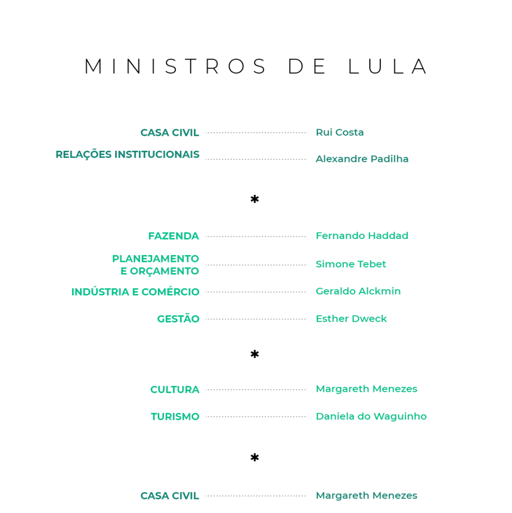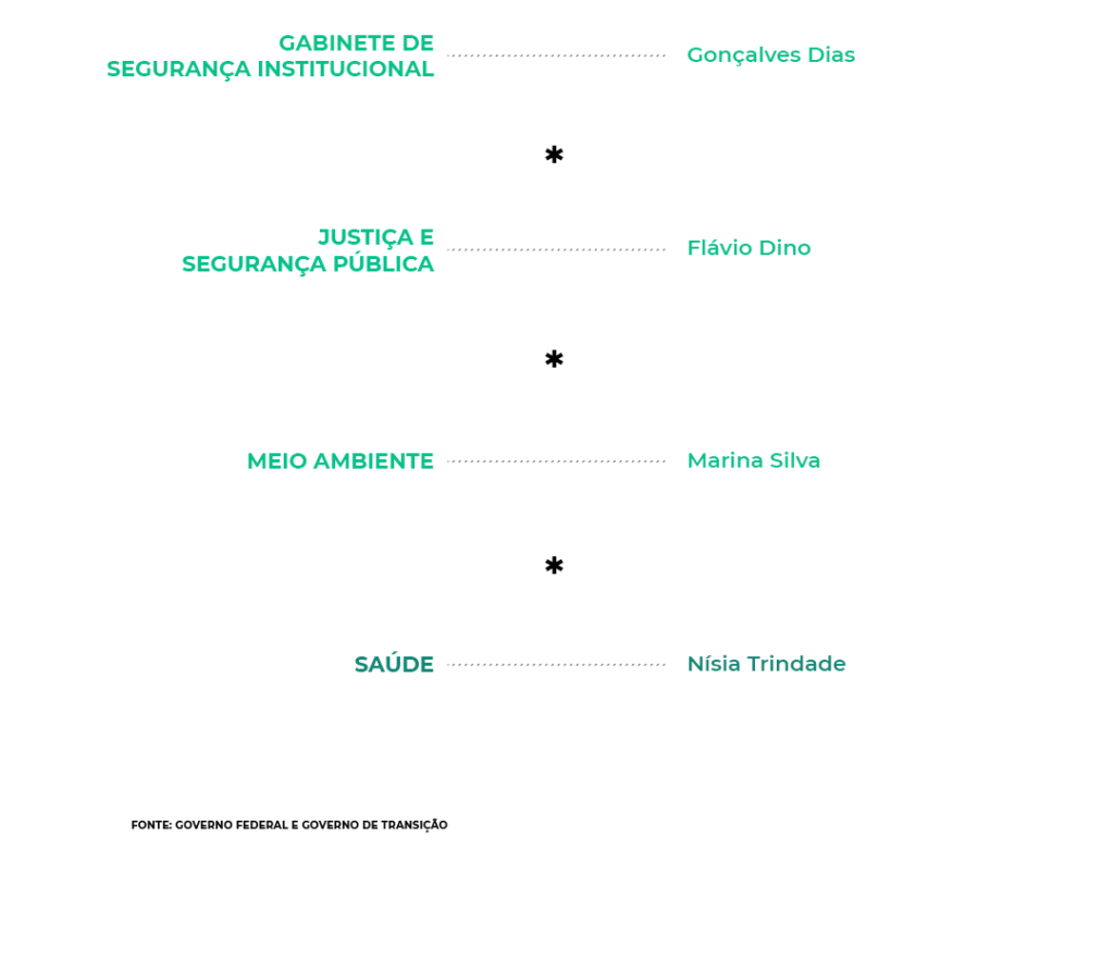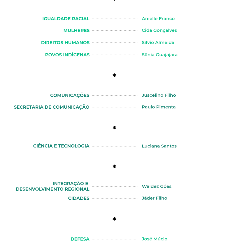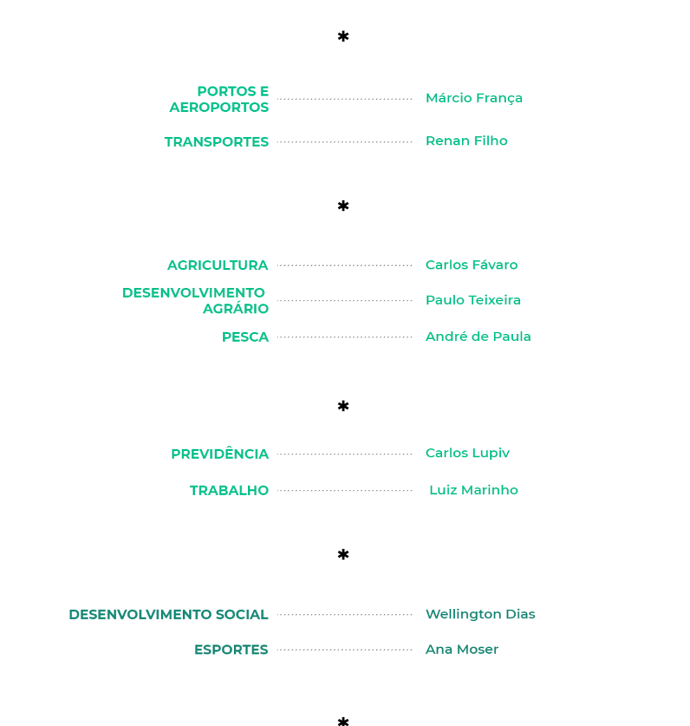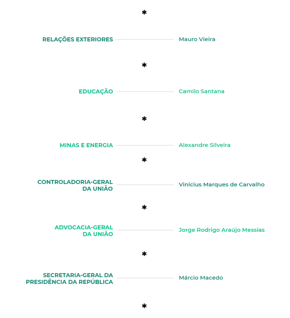 Confira abaixo a relação dos Ministros selecionados pelo novo Governo: