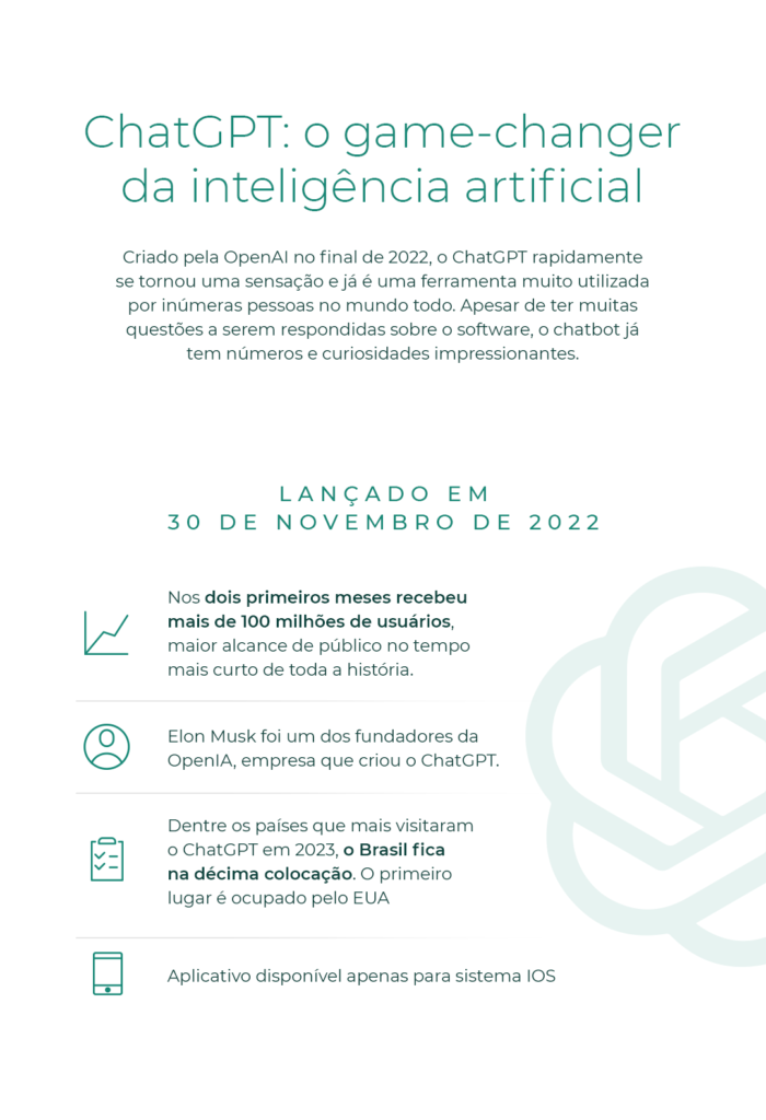 Atualmente, uma ferramenta que se tornou um fenômeno é o ChatGPT, que em tão pouco tempo de lançamento, o software bateu recordes em número de usuários.