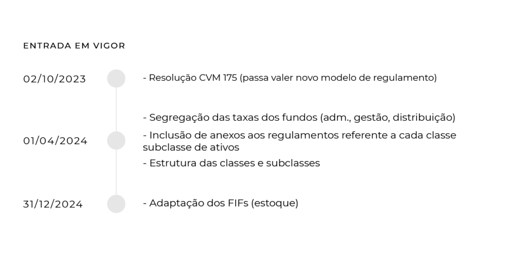 - Criação das classes e subclasses: nova estrutura para acomodar o passivo e ativo dos fundos a partir de abril de 2024. A depender dos sistemas operacionais dos administradores, o uso de classes e subclasses com direitos distintos poderá ser uma ferramenta interessante para planejamento sucessório e para governança dos recursos financeiros.