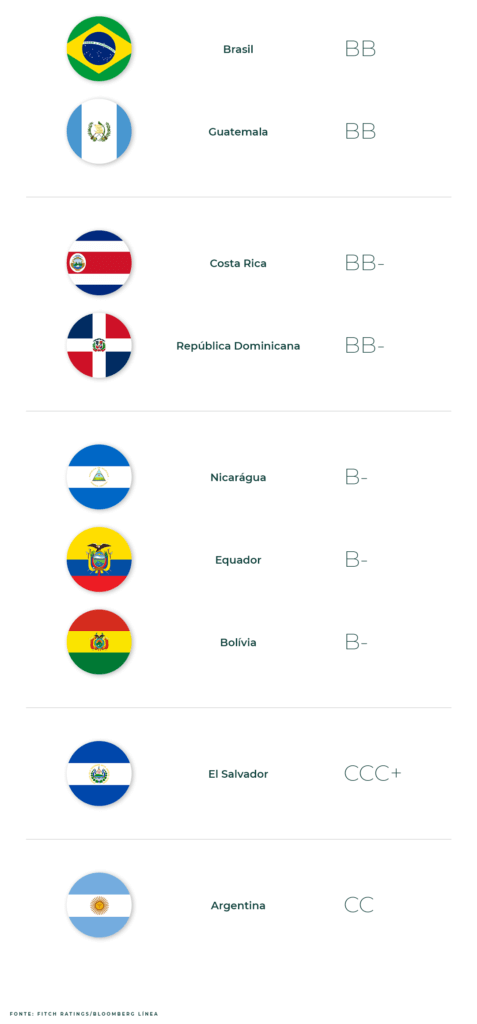 As três principais agências de classificação de risco (Fitch Ratings, Moody’s e S&P) têm sistemas de notas similares. Quanto mais alta a nota, maior é a capacidade do país em honrar seus compromissos financeiros. Do outro lado, quanto menor a nota, menor é essa capacidade e maior a chance de dar calote.